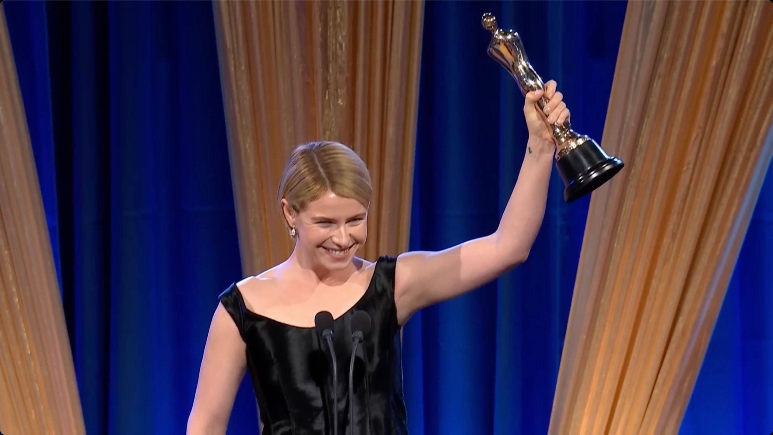 最戏剧性的是《哈姆奈特》的选角。导演赵婷放话:“剧本只为杰西写。”她演16世纪的草药师艾格尼丝,丈夫莎士比亚的儿子夭折后,那种把丧子之痛揉进骨髓的表演,让评委们集体沉默。颁奖季她拿奖拿到手软,金球奖、英国电影学院奖、演员工会奖……直到奥斯卡封后,她在台上抱着小金人哽咽:“我爸总说,爱尔兰姑娘要像野草一样疯长。”